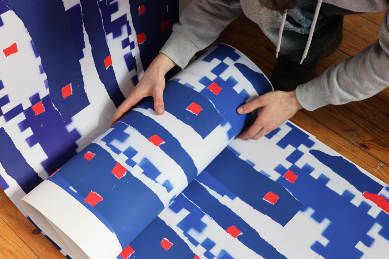 L'exposition témoigne ainsi d'une hybridation profonde des savoir-faire, faisant dialoguer les techniques académiques et contemporaines. Le trait manuel du dessin et de la peinture ancre l'image dans le temps long, tandis que la découpe et l'assemblage du collage transforment le papier en sculptures à échelle humaine, redonnant une présence physique aux images évanescentes. En parallèle, l’expérimentation numérique devient un générateur de motifs et de textures, systématiquement réinterprété par le geste artisanal. En s’emparant de ces éléments pour les réintégrer dans le monde physique, les artistes forgent un langage visuel commun où le numérique devient la matière première de créations tactiles et habitées.
